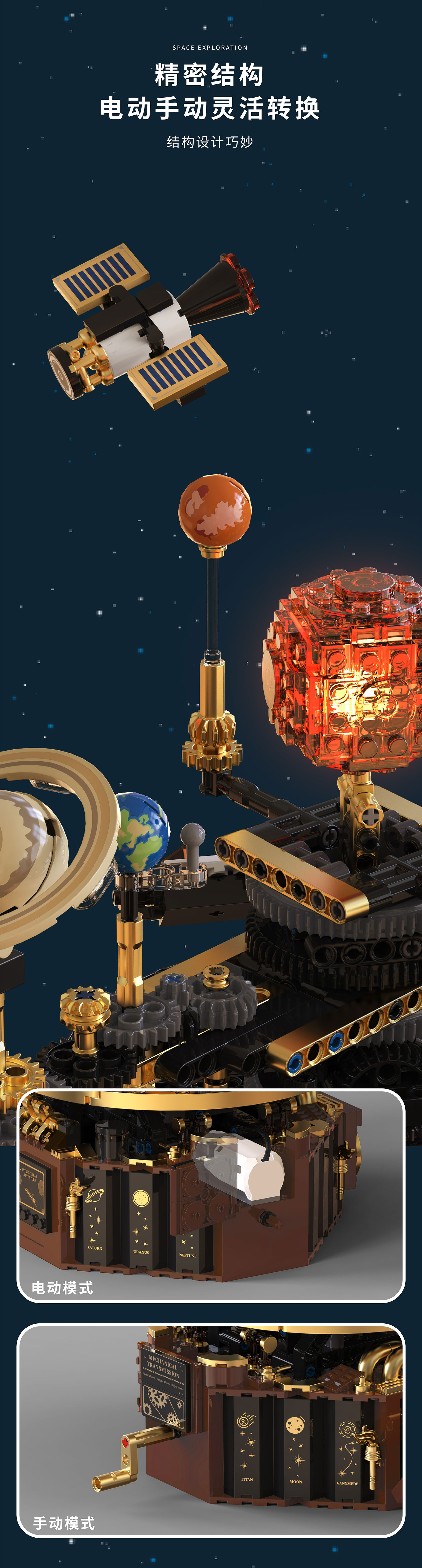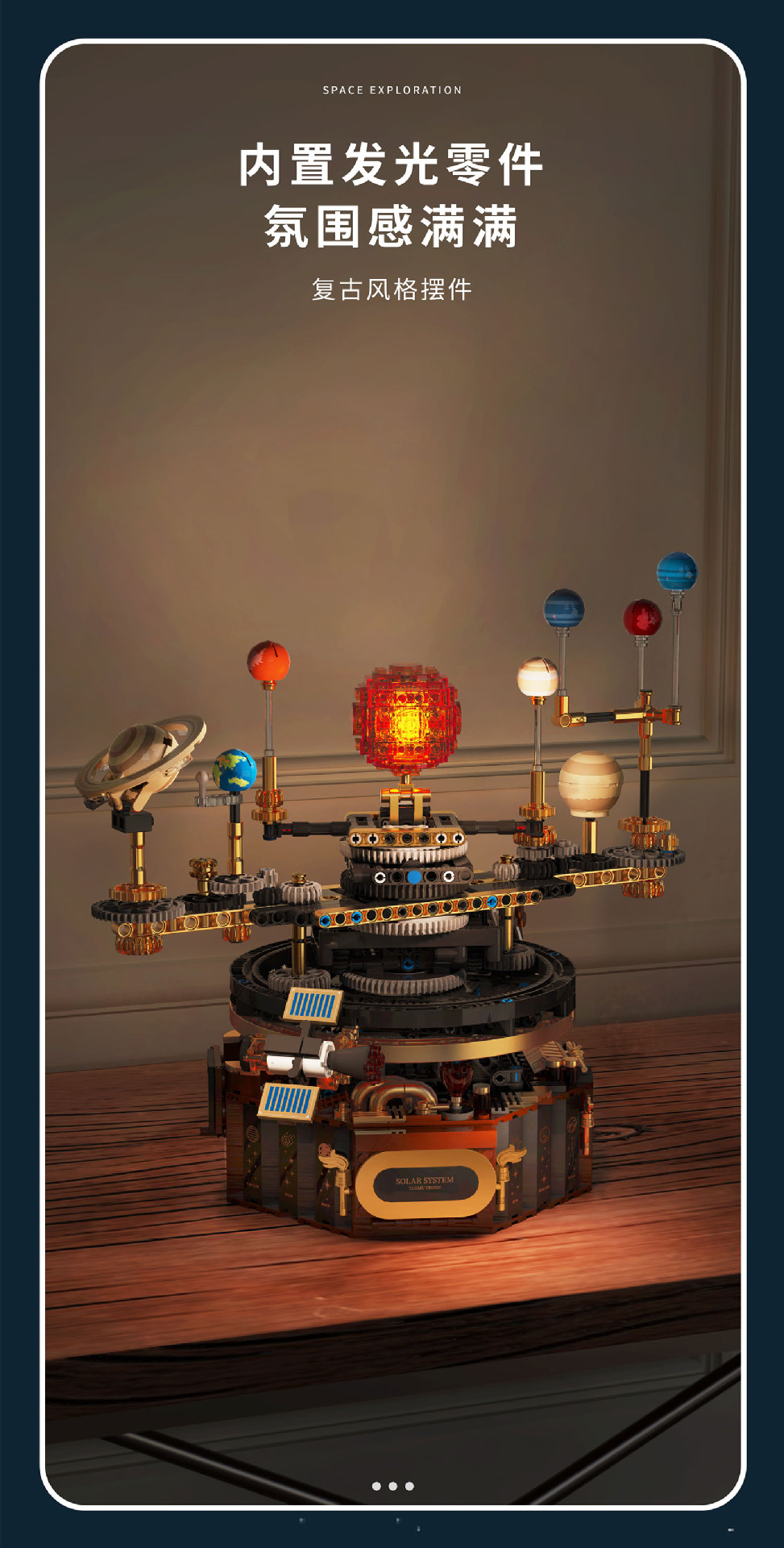 拓木T2004电动太阳系星球仪科教益智拼装积木兼容乐高玩具摆件