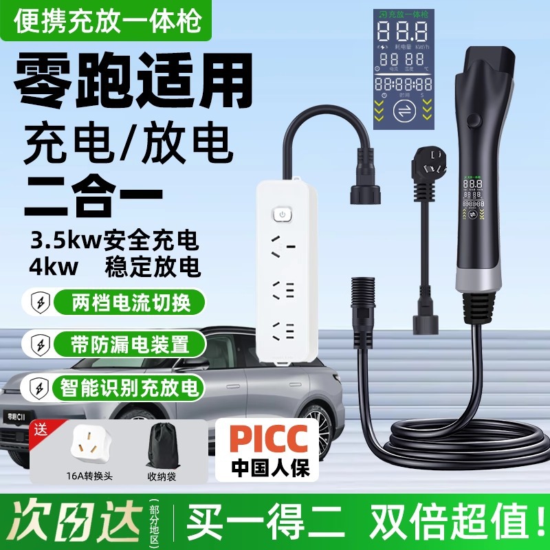 零跑通用新能源汽车随车充电放电一体枪便携智能二合一排插放电器