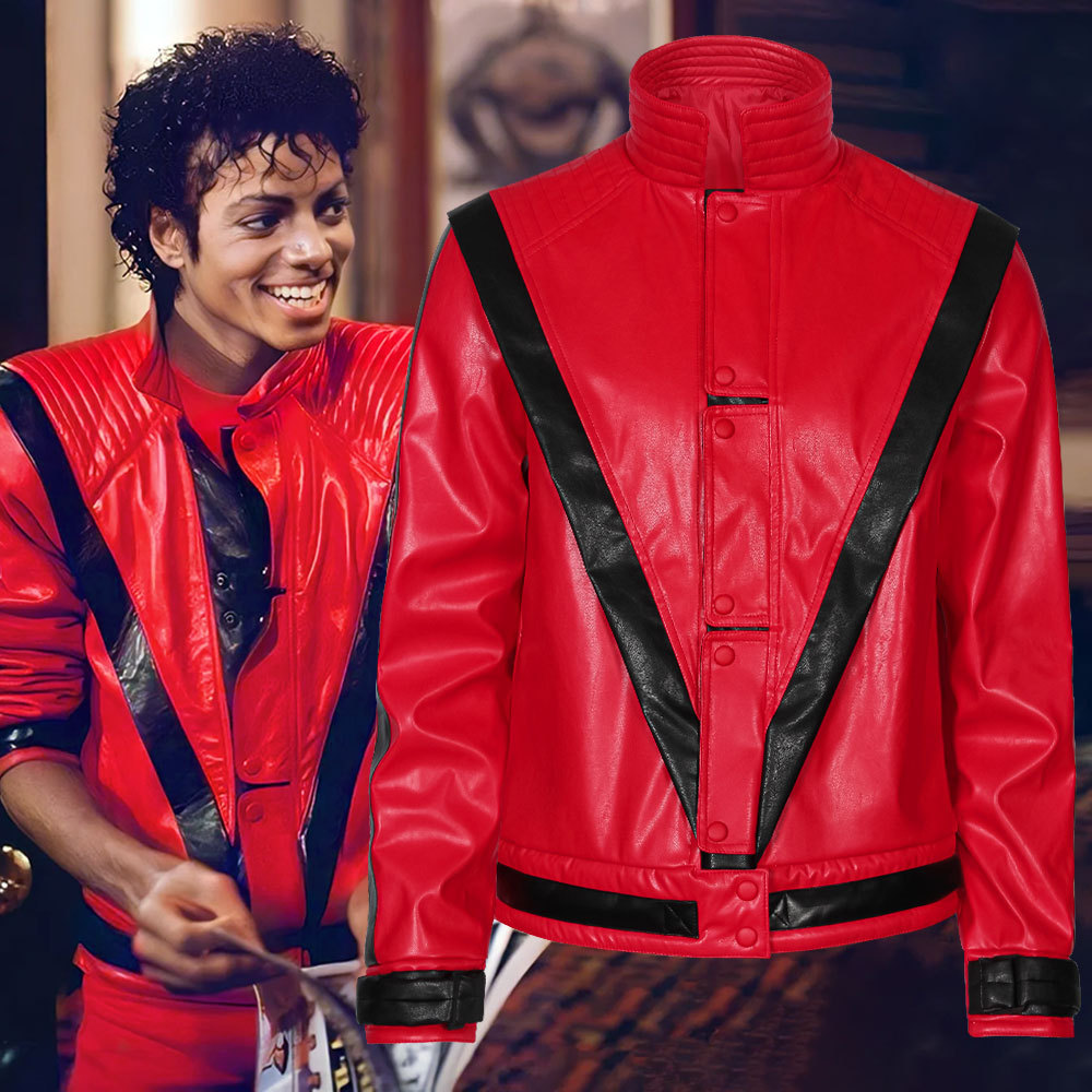 迈克杰克逊cos服红皮衣万圣节cosplay全套舞台红色皮外套复古