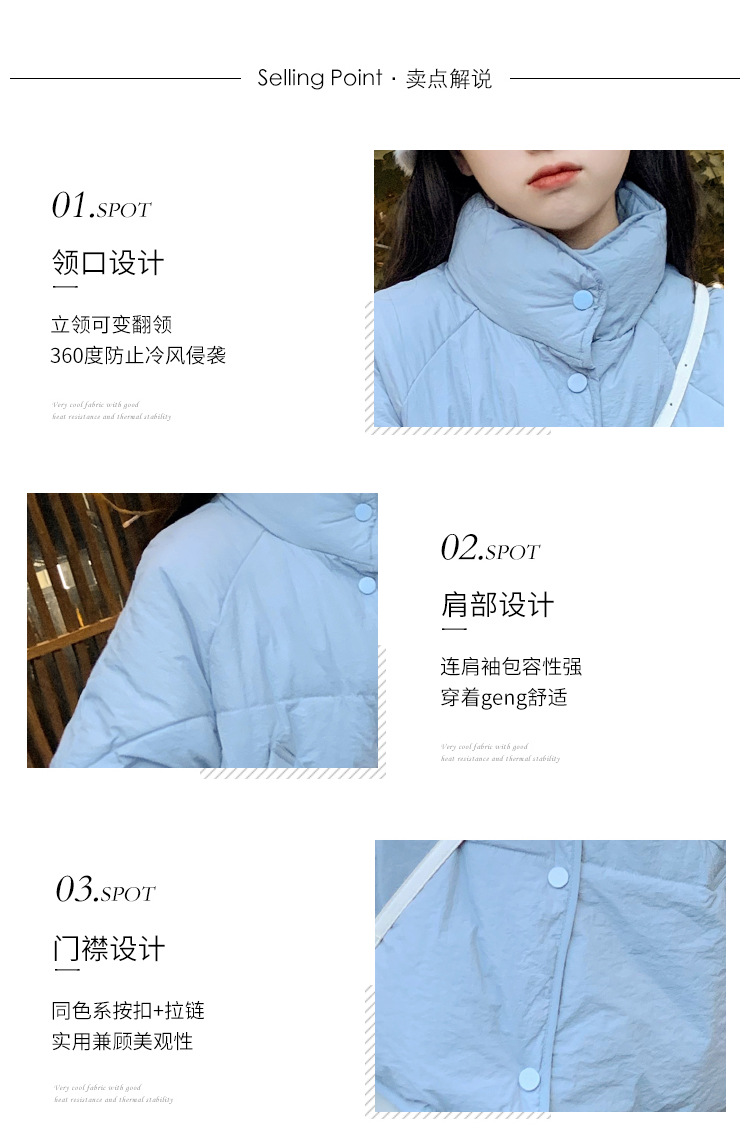 跨境羽绒棉服女2025年新款韩版小个子设计感面包服奶蓝色短款外套