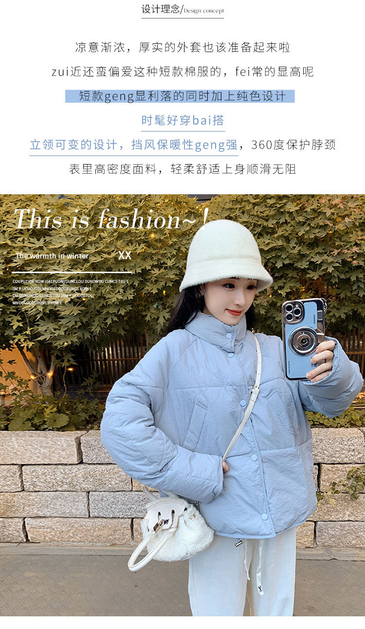 冬の新型韓国風ダウン綿服女性のショートタイプ2023年のゆったりした立襟の小柄なファッションはパン服を厚くします。