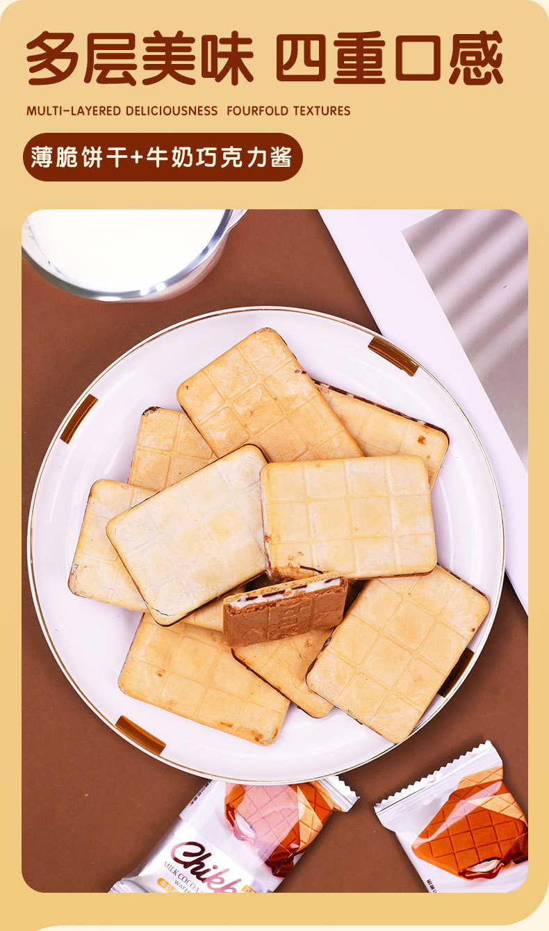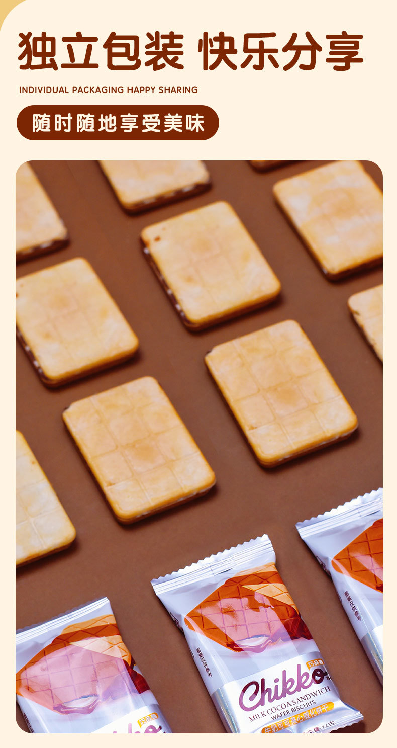牛奶可可威化饼干纯可可脂巧克力制品薄脆夹心饼干酥脆休闲小零食