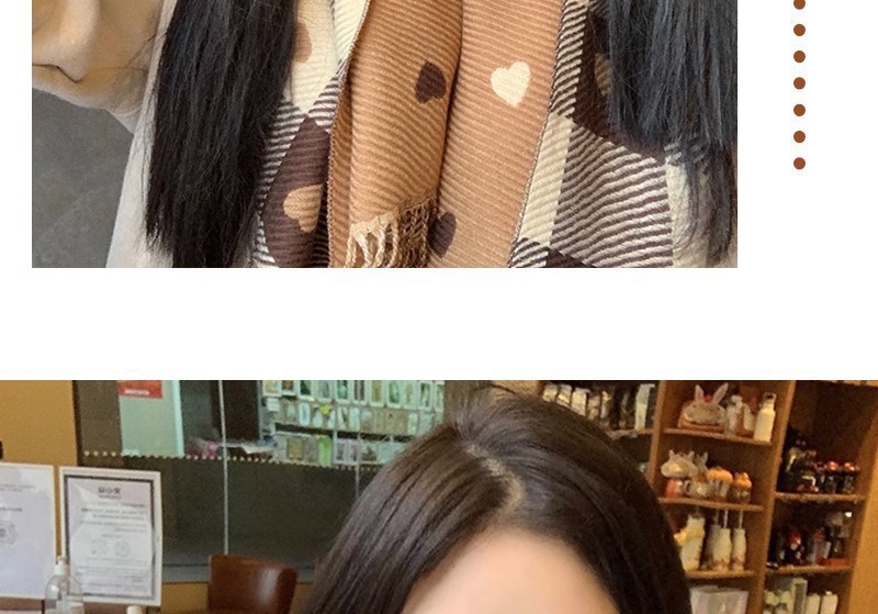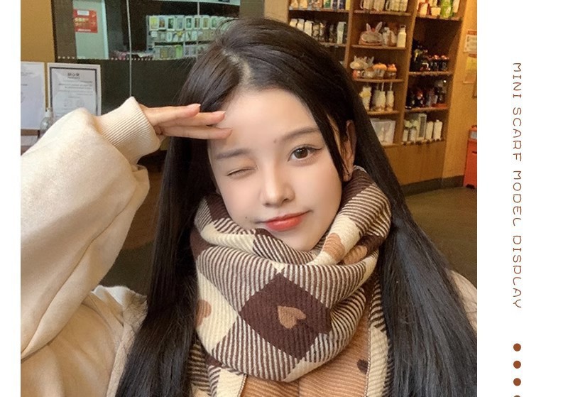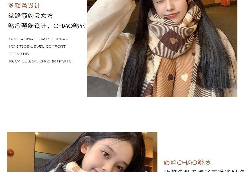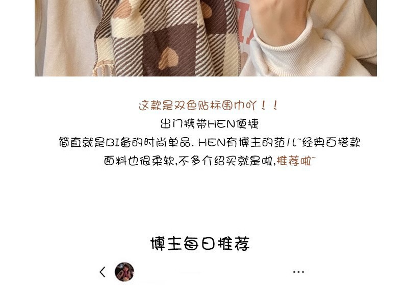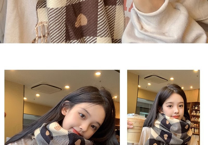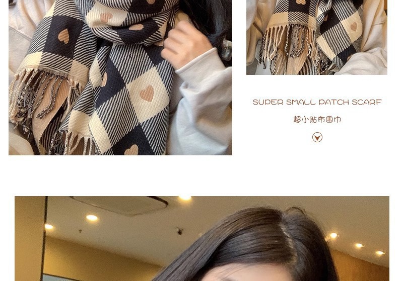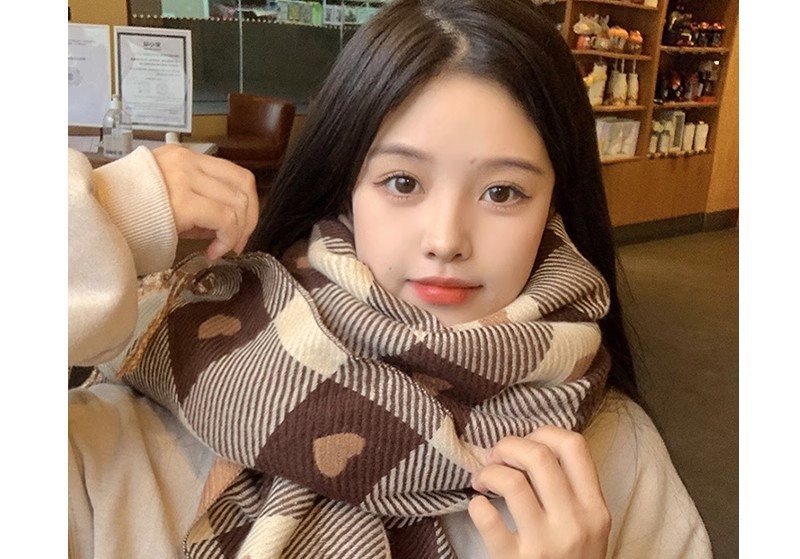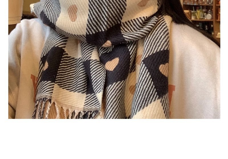 2025冬季新款仿羊绒围巾女爱心格子加厚流苏围脖韩版时尚百搭披肩