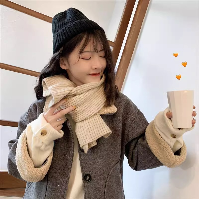 2024秋冬新作韓国版ニット純色百合ファッション装飾マフラー保温insシンプル女性