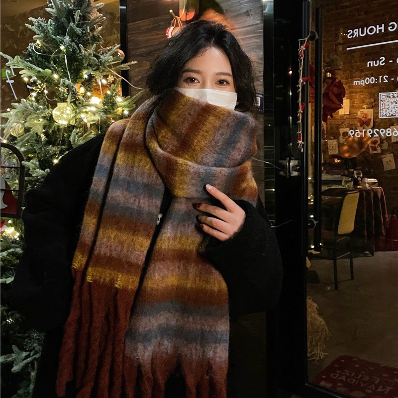 拼色围巾女条纹马海毛保暖披肩百搭冬季新款高级感防风毛绒围脖