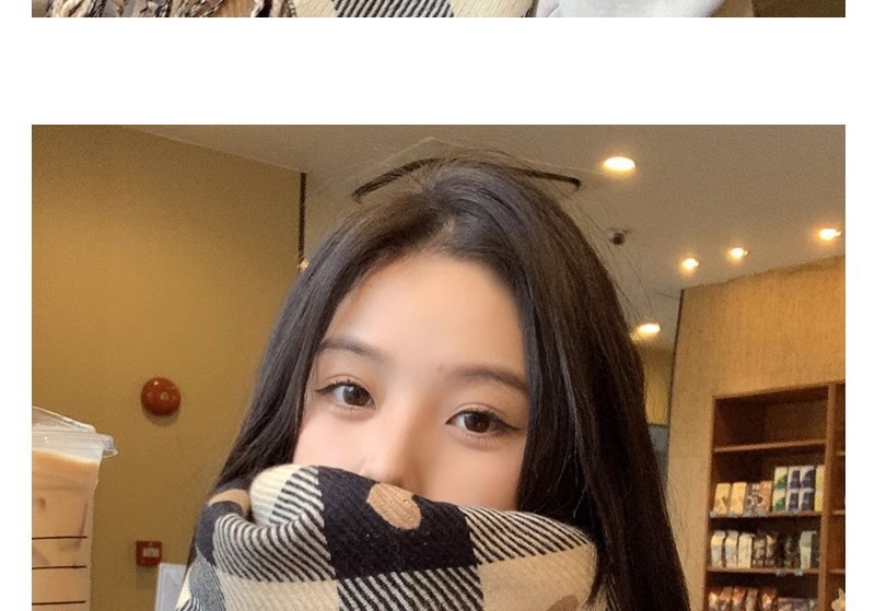 2023新型格子マフラー女性秋冬韓版百合学生カップルはカシミヤの保温格子縞のマフラーをまねています。