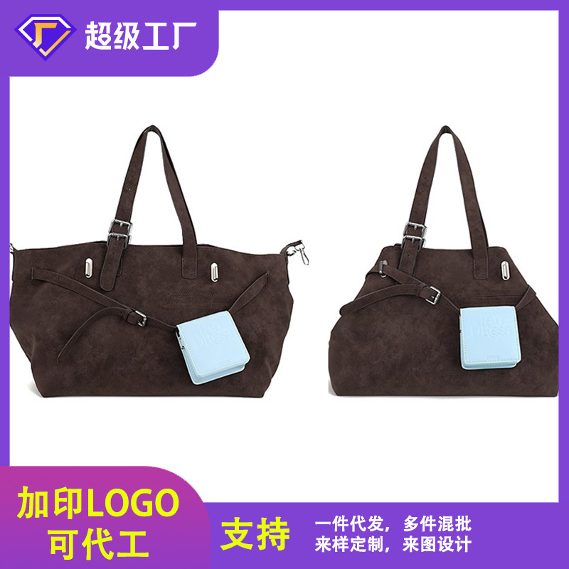 クロスボーダーレトロショルダーバッグレディーススエードつや消しトートバッグ大容量通勤ハイエンド脇の下ショルダーバッグ