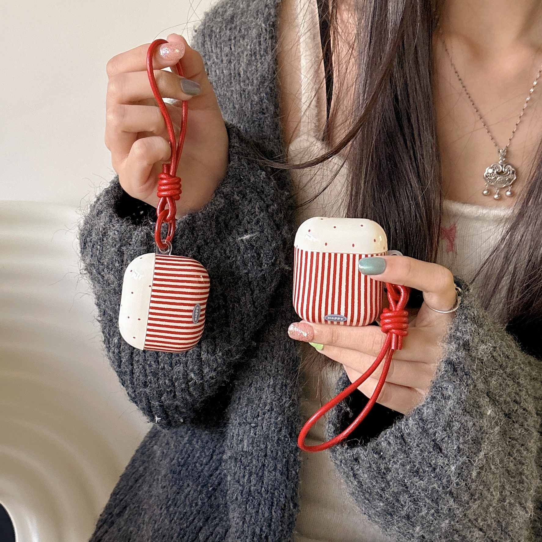 韓国風ミニマリストの波点ストライプ柄、AirPods4/pro3対応イヤホン保護ケース、第2・第3世代用、ストラップ付き、個性的