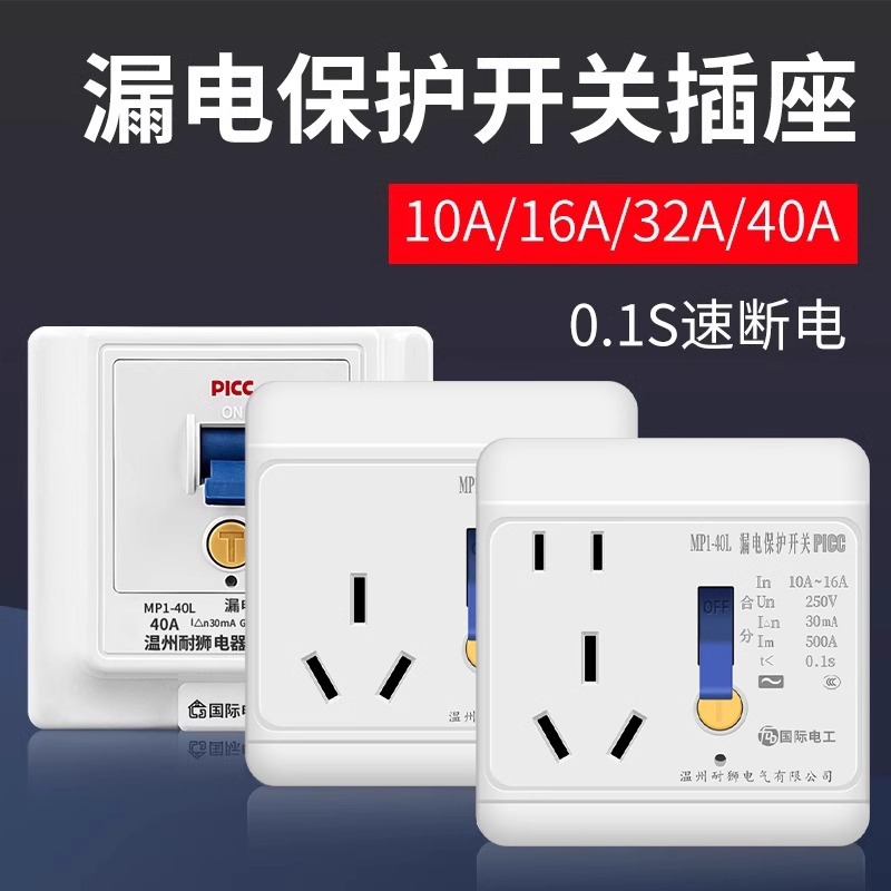 空调漏电保护插座16A电热水器漏保插座10A家用漏电保护开关32/40A