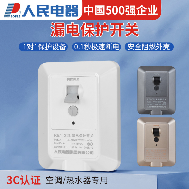 人民电器86型漏电保护开关漏保空调柜机热水器家用暗装防漏电开关