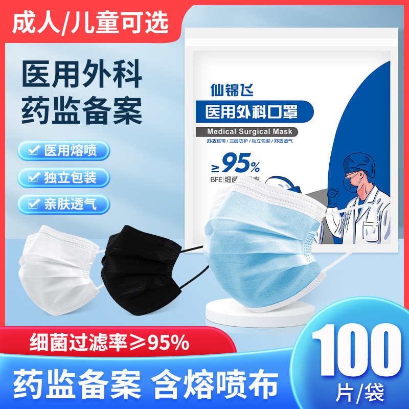 医療用サージカルマスク在庫あり独立パック100枚使い捨て卸売医療用マスク三層保護メーカー