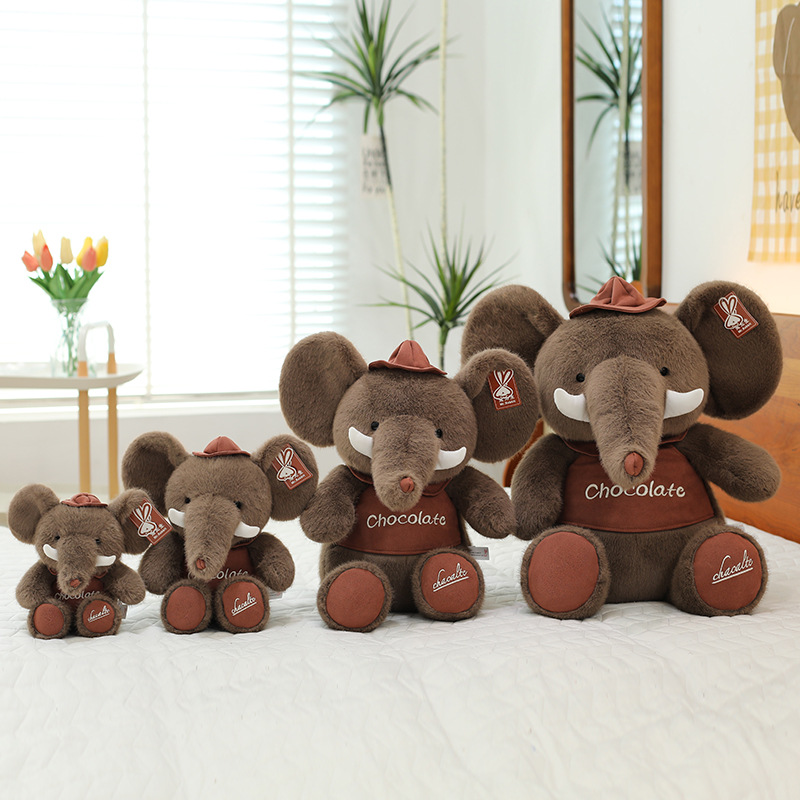 外贸新款原创美拉德小象公仔萌系可可巧克力庄园大耳朵象玩偶抱枕
