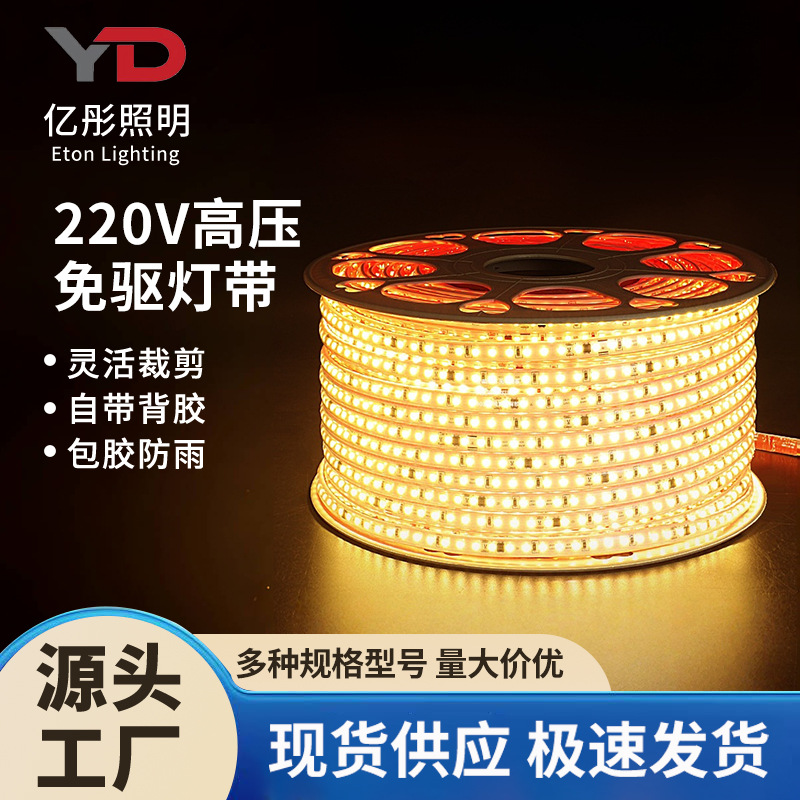 220V 高電圧フリードライブ複列ライトストリップ 2835 ホームインテリア埋め込みラインライト天井キャビネット LED 自己粘着ライトストリップ