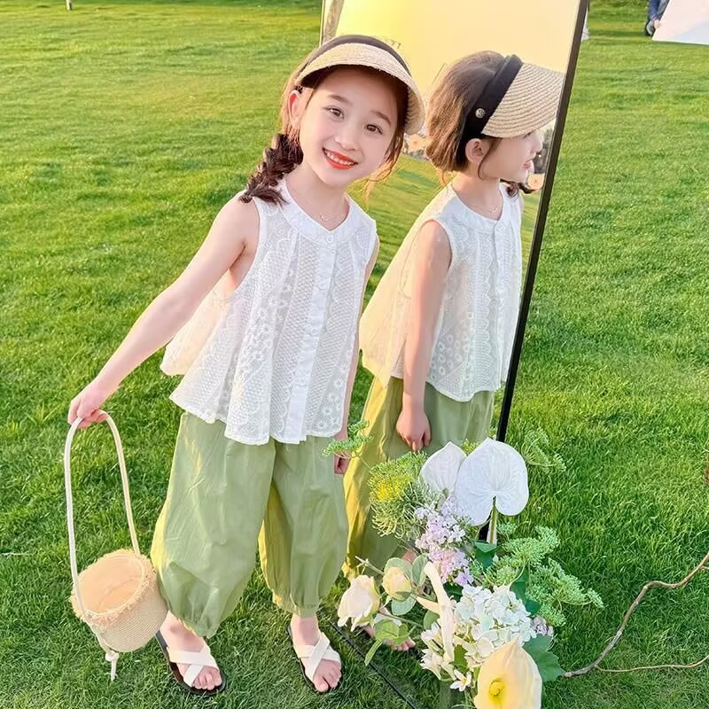 小中少女スーツ2025夏服新型韓国版児童洋気ベスト赤ちゃん薄手パンツ2点セット潮