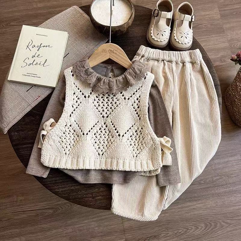 女童套装2025新款三件套秋季款洋气时髦打底马甲森系女宝宝时髦