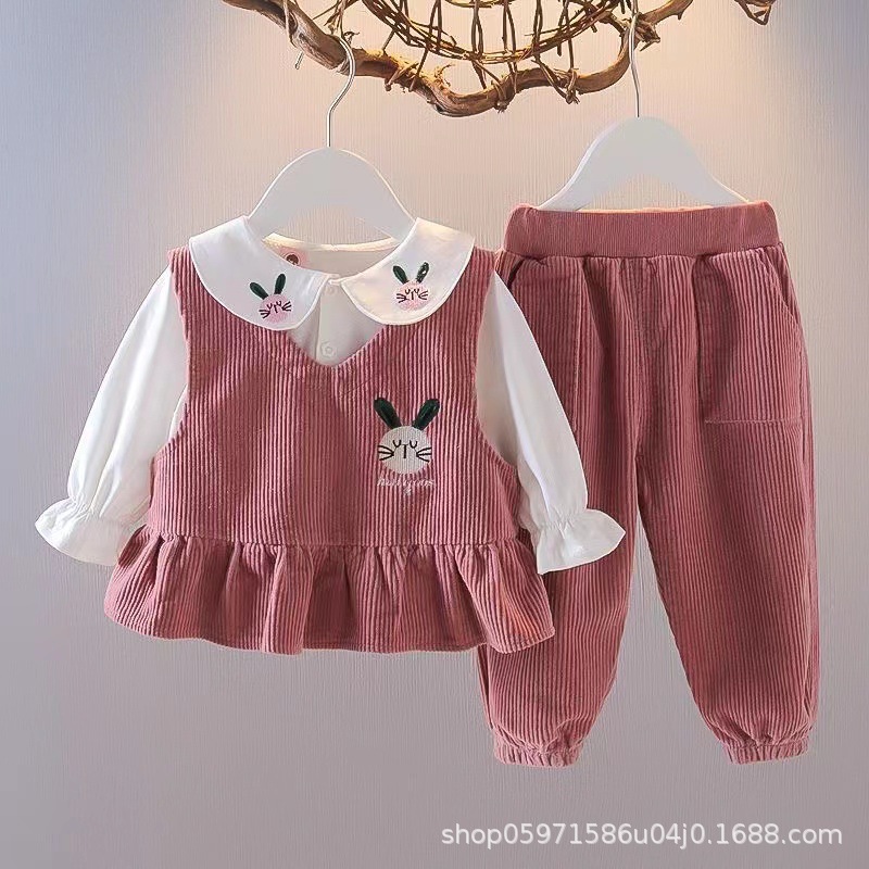 女児春秋2025新作スーツ子供用ベスト女の子洋気服三点セット女の子赤ちゃんベビー服