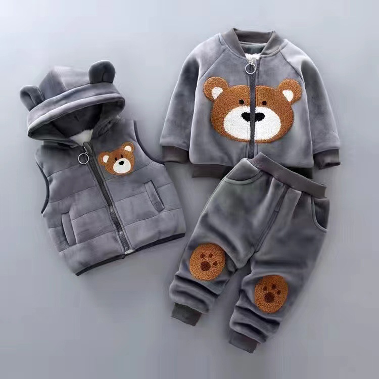 秋冬の赤ちゃんとベルベットの厚い3セット1 ~ 4歳の赤ちゃんの刺繍ベアーの厚いセット冬の赤ちゃん
