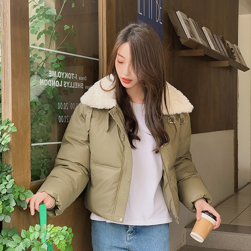 ヨーロッパとアメリカの綿服 2025 外国貿易ショート綿服女性のための香港スタイル冬韓国語版肥厚学生綿ジャケット毛皮の襟ジャケット滄州