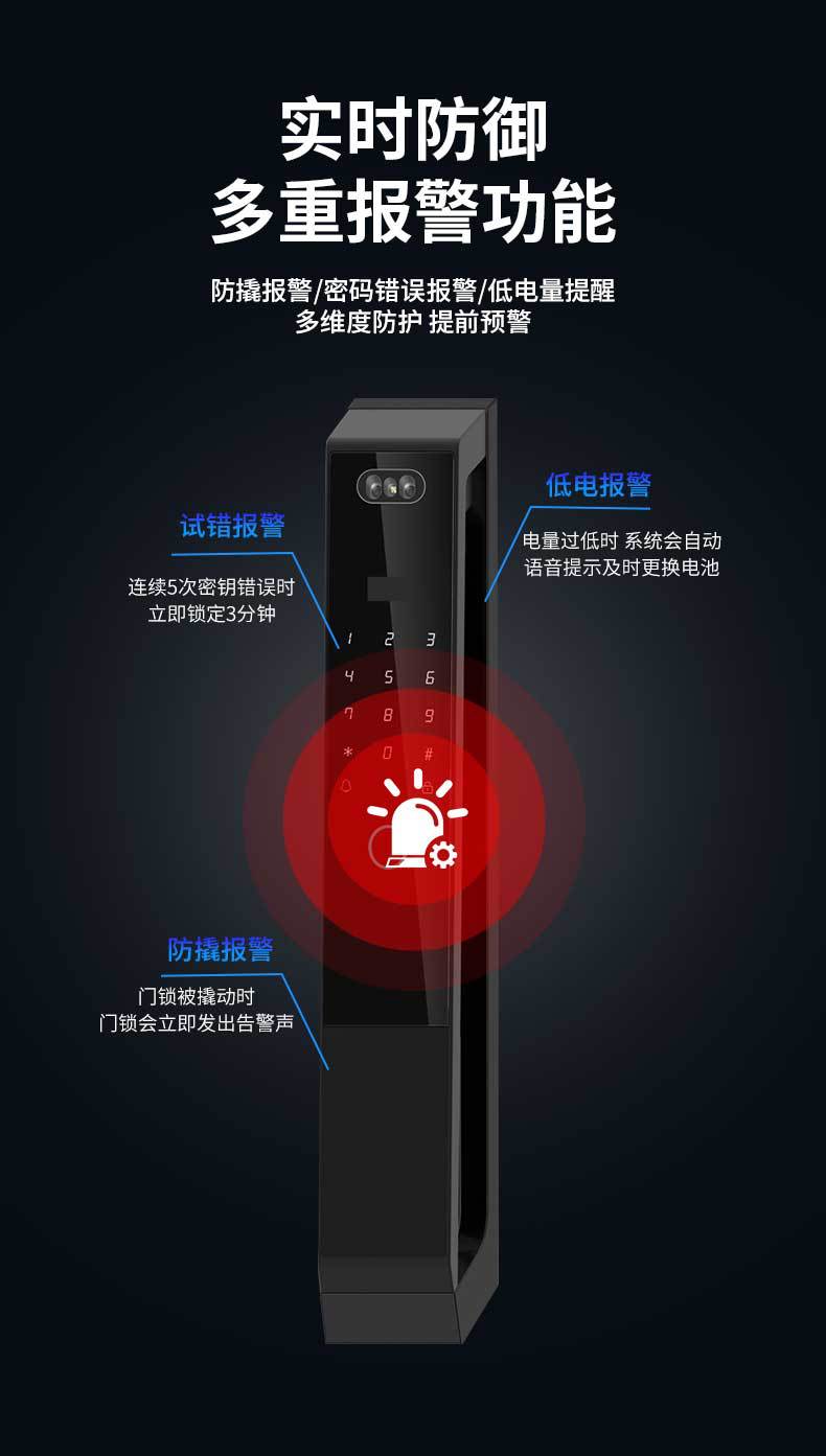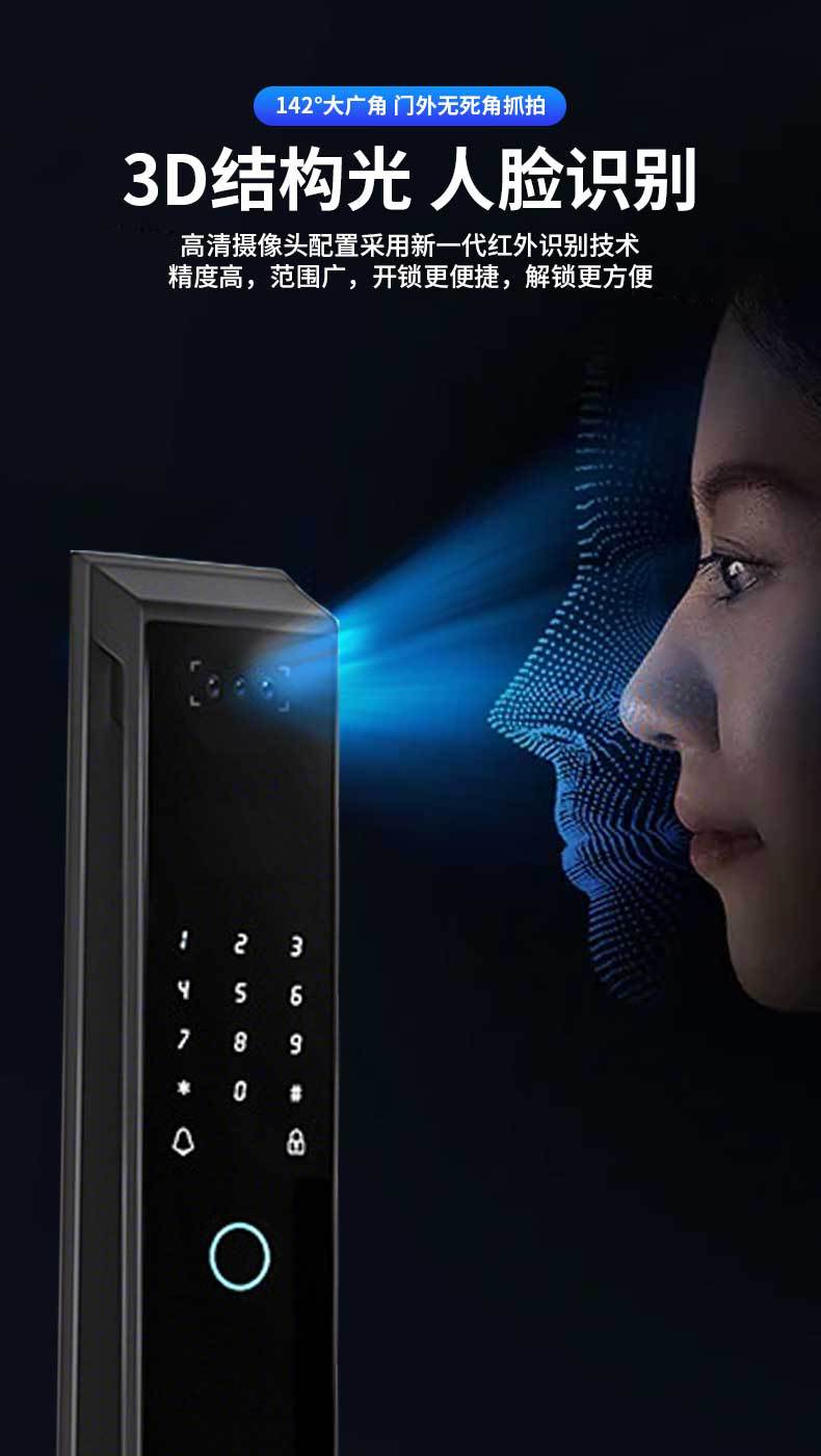 家用防盗智能门锁人脸识别指纹锁入户门电子密码锁主动监控对讲锁