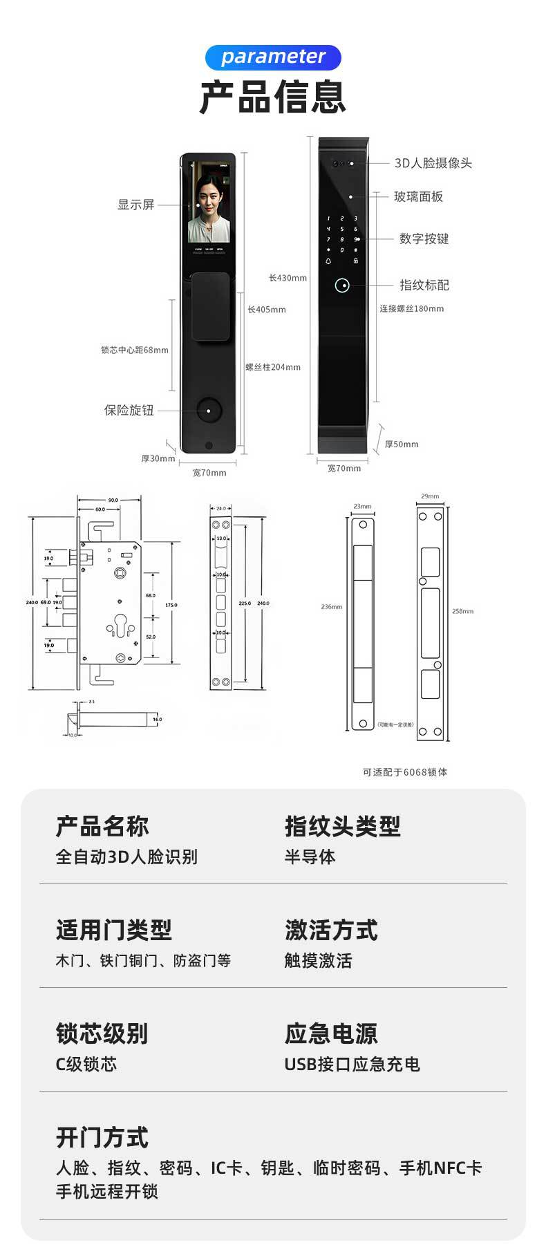 款式 指纹,密码,带钥匙,掌纹,可视猫眼,人脸识别,远程解锁