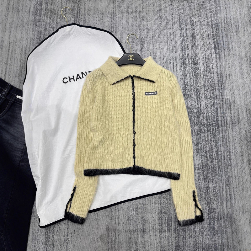 潮牌mm25秋冬新款减龄少女风手钩边翻领字母徽标针织开衫