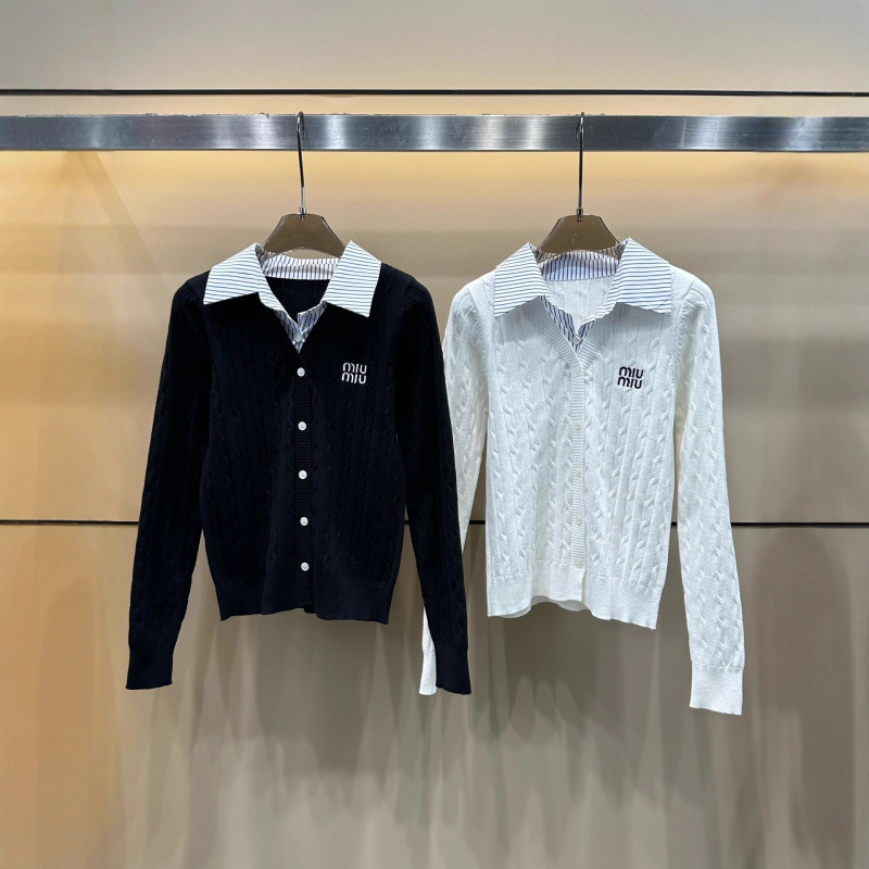 mm家25ss秋冬新款翻领刺绣字母针织假两件上衣黑白两色