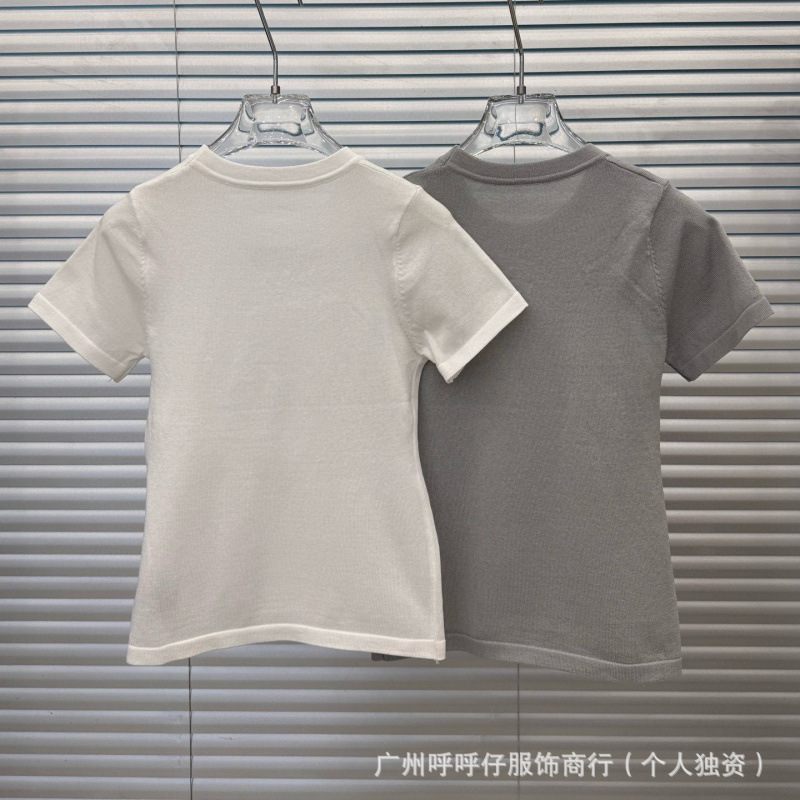 25夏新作シンプルで万能なレター刺繍ニット半袖レディースモデル