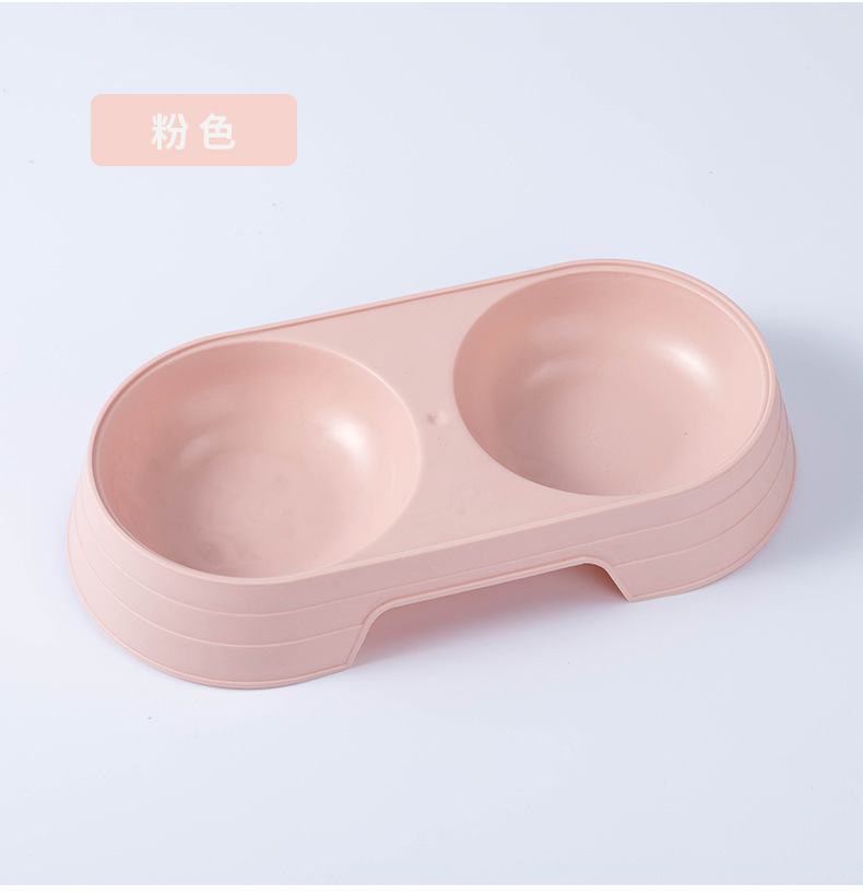 猫碗狗碗双碗一体猫盆狗食盆pp糖果色宠物一碗双用猫咪宠物碗食具