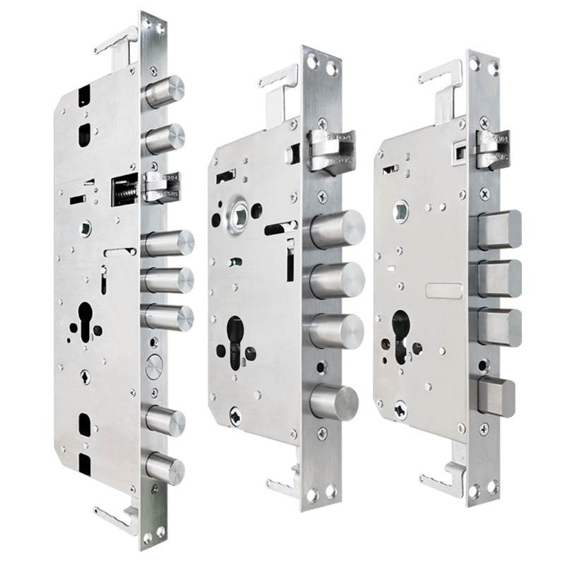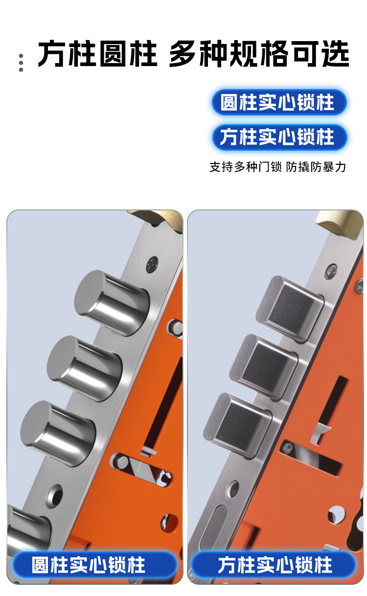 盗難防止ドア用機械式ロック本体、汎用型、角頭・丸頭、鋼製表面、銅製舌、シングル・ダブル、厚型盗難防止銅舌ロック本体