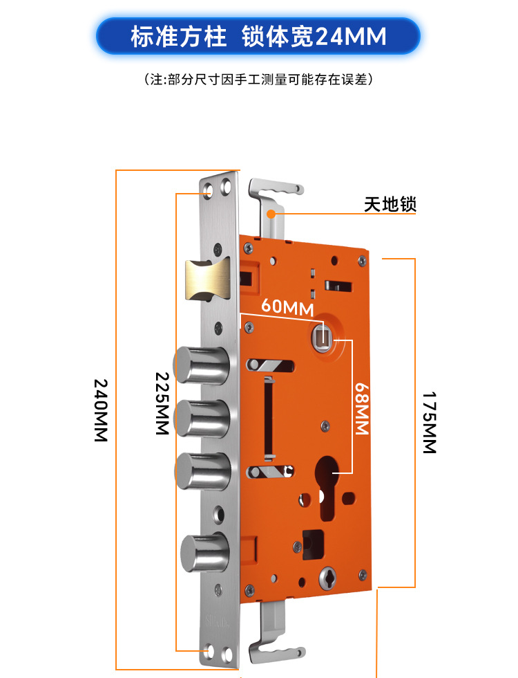 6068スマートロック専用ロック本体24*240盗難防止ドア30*240双快双活6080大覇王ステンレス