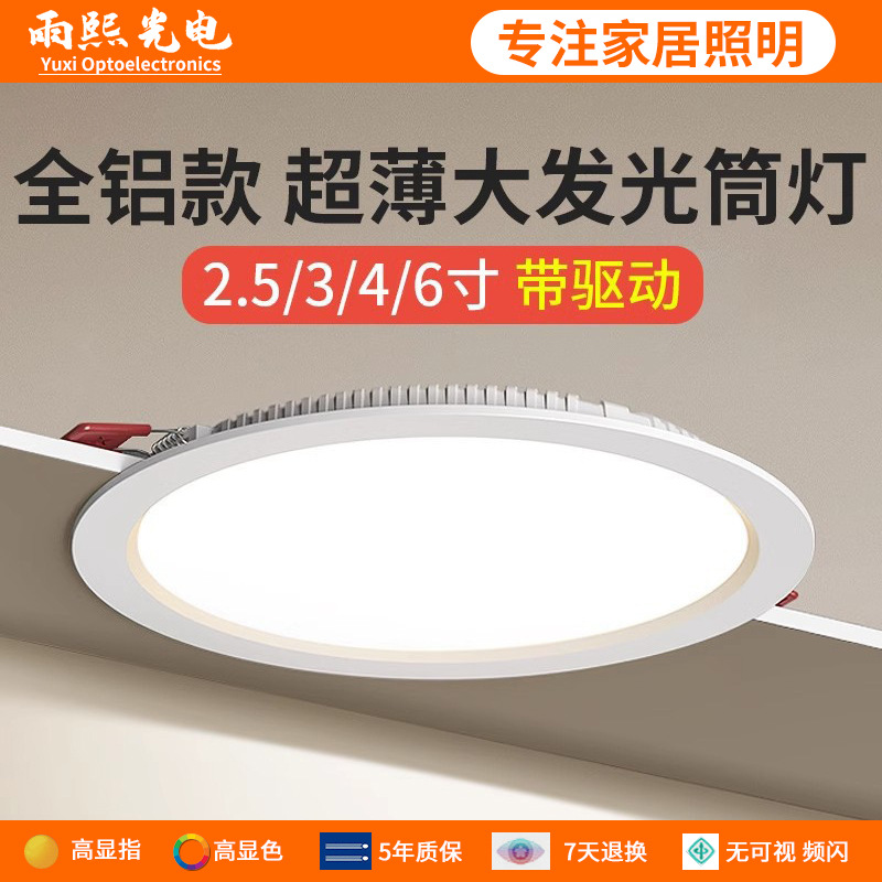超薄led筒灯嵌入式天花灯8cm4寸7W孔灯家用客厅店铺商用洞灯桶灯