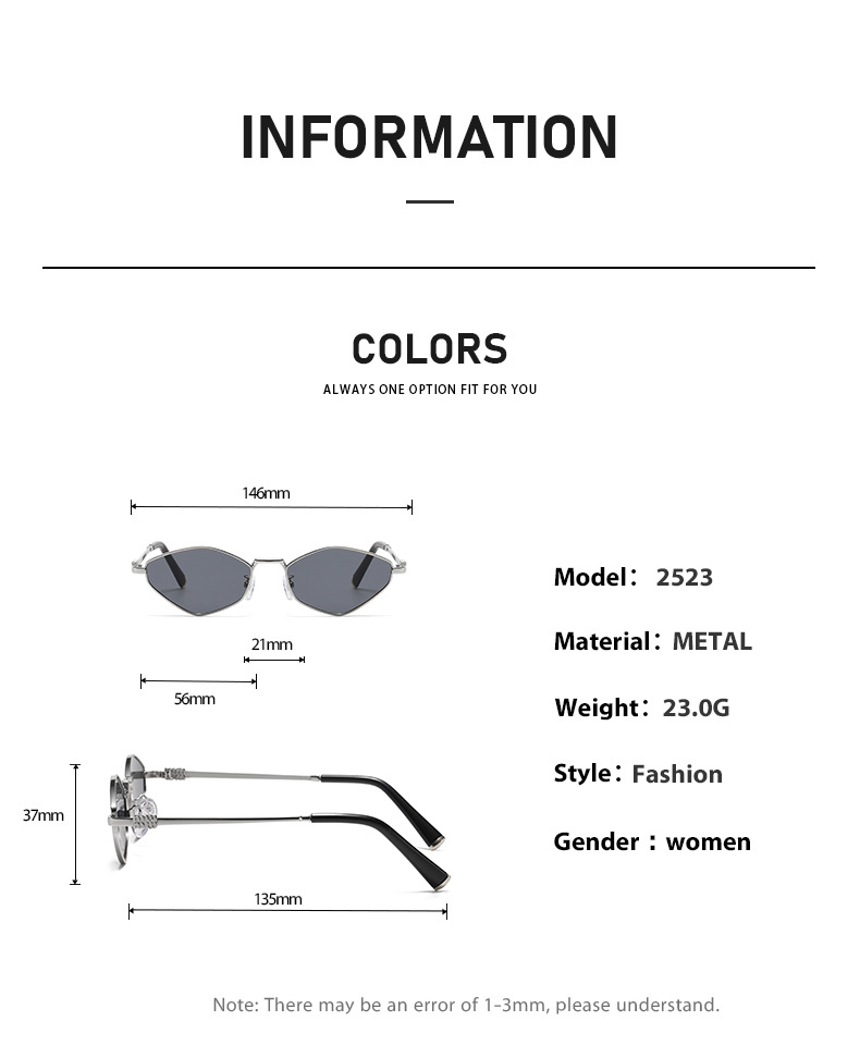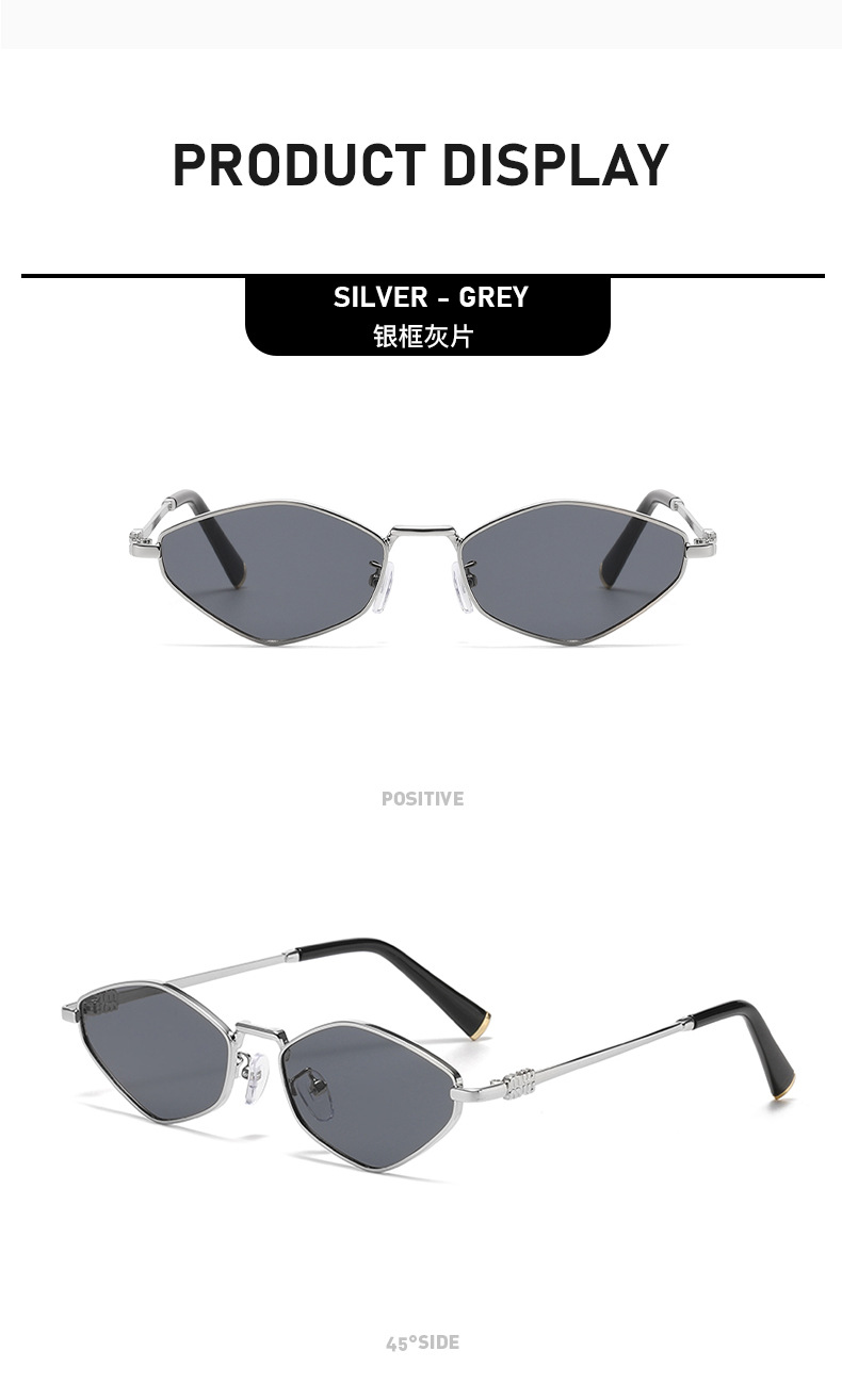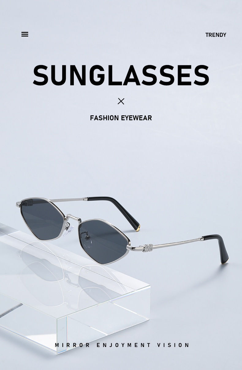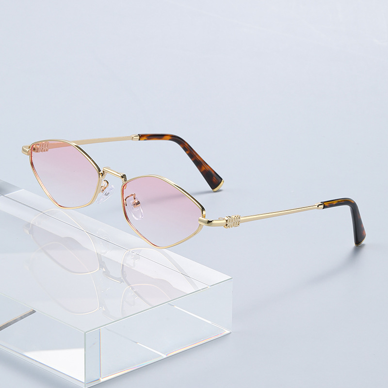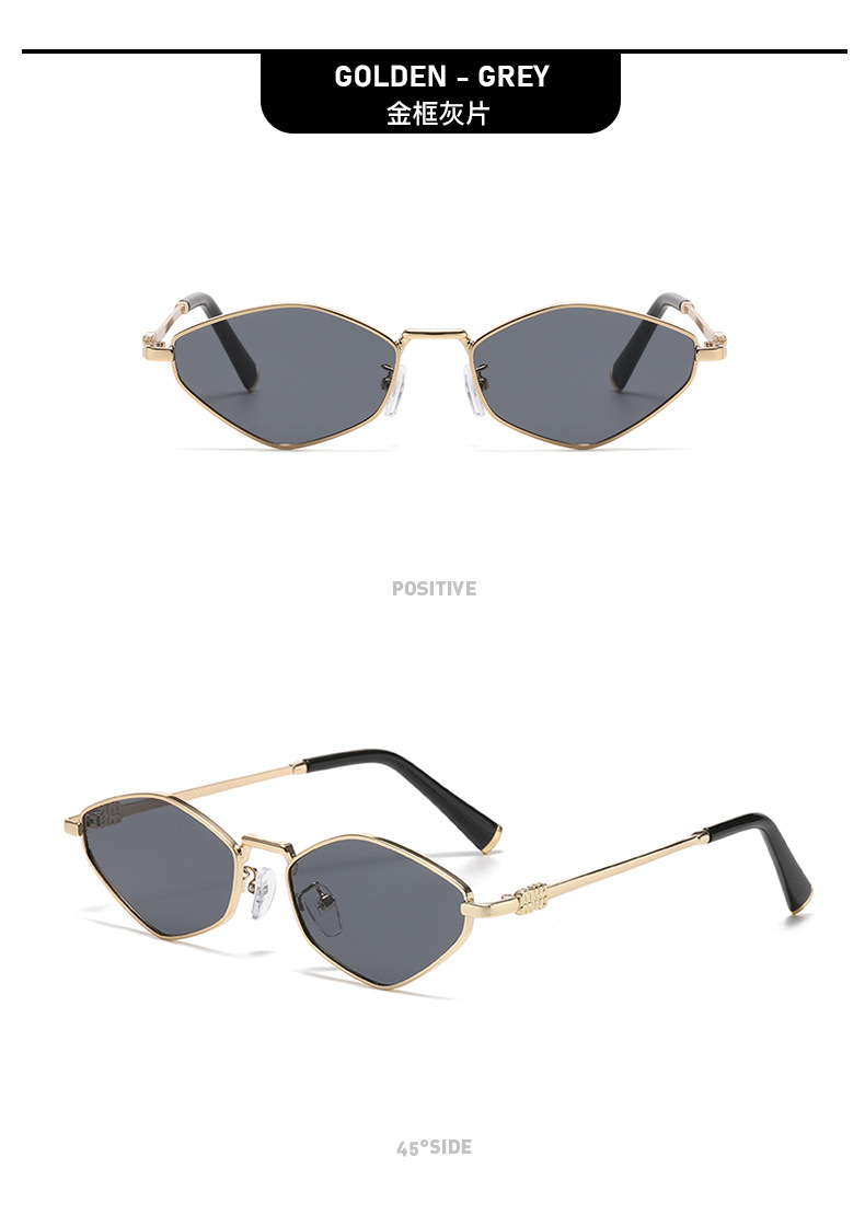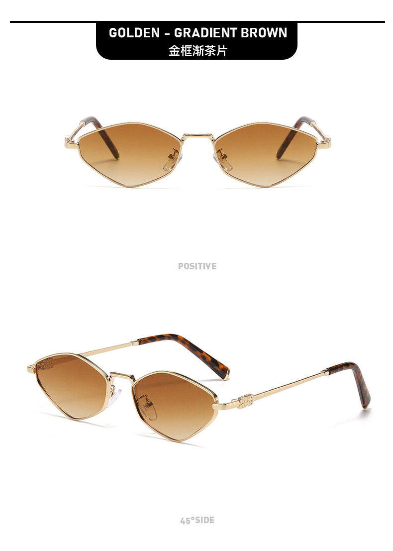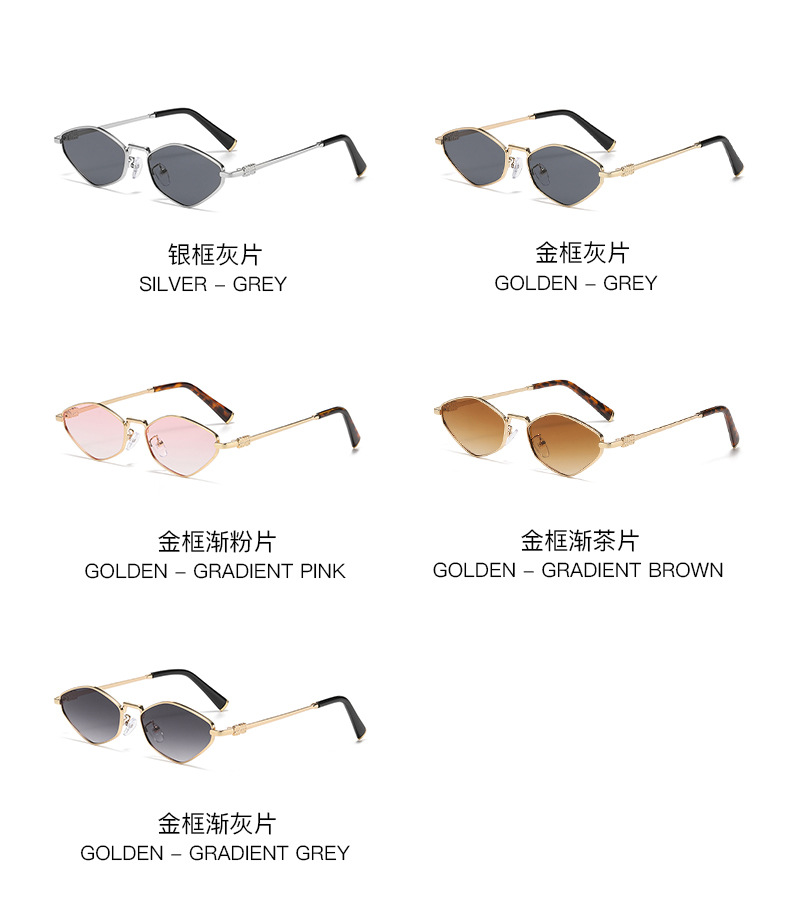 新型クロスボーダー多角形サングラス 女性用 高級感 小フレームデザイン 超軽量メタル菱形サングラス 工場直販メガネ