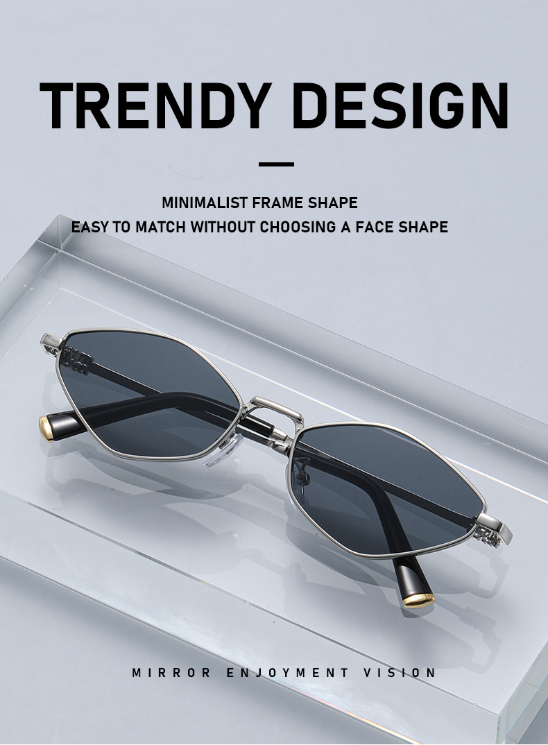 新款时尚多边形金属墨镜防紫外线高级感太阳镜眼镜男女通用uv400