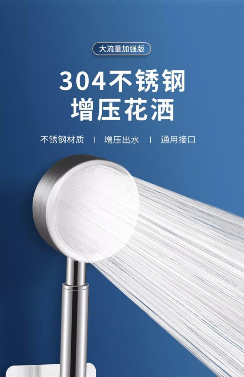 德国304不锈钢增压花洒喷头大出水淋浴洗澡家用浴室软管套装1手持