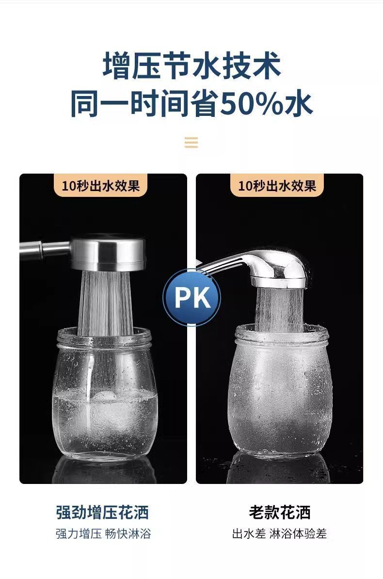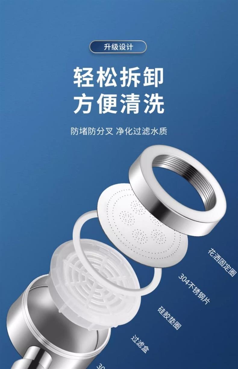 不锈钢增压淋浴器花洒喷头内置淋浴头过滤可拆卸清洗全金属材质
