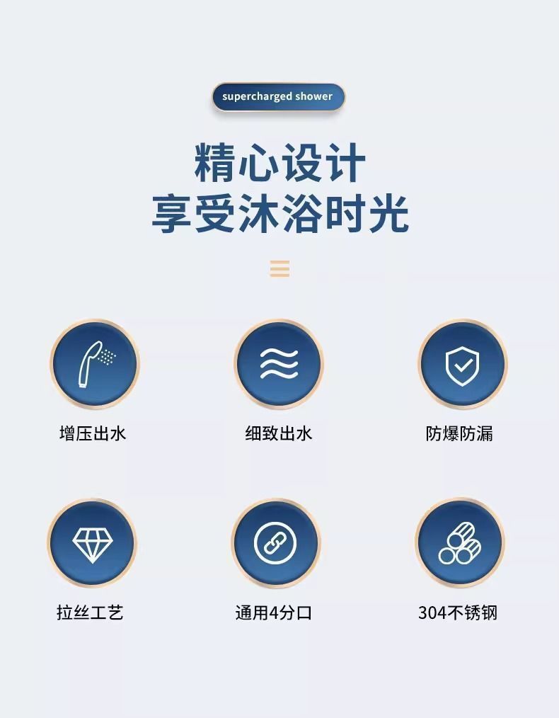系列 304不锈钢增压花洒(单花洒无配件),304不锈钢增压花洒+1米5防爆软管,304不锈钢增压花洒+2米防爆软管,304不锈钢增压花洒+耐用免打孔支架,304不锈钢增压花洒+1米5管+支架,304不锈钢增压花洒+2米软管+支架