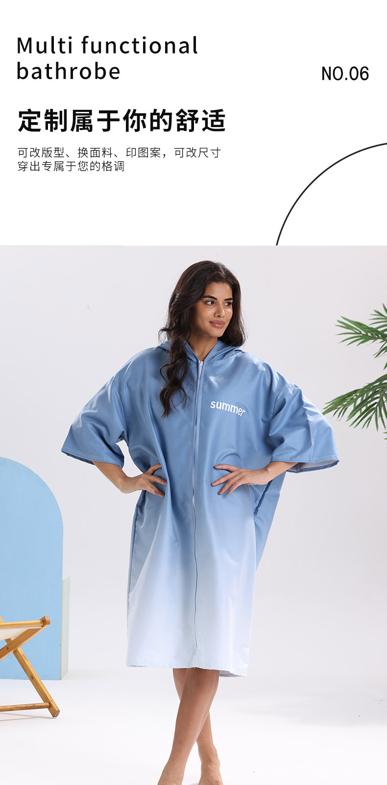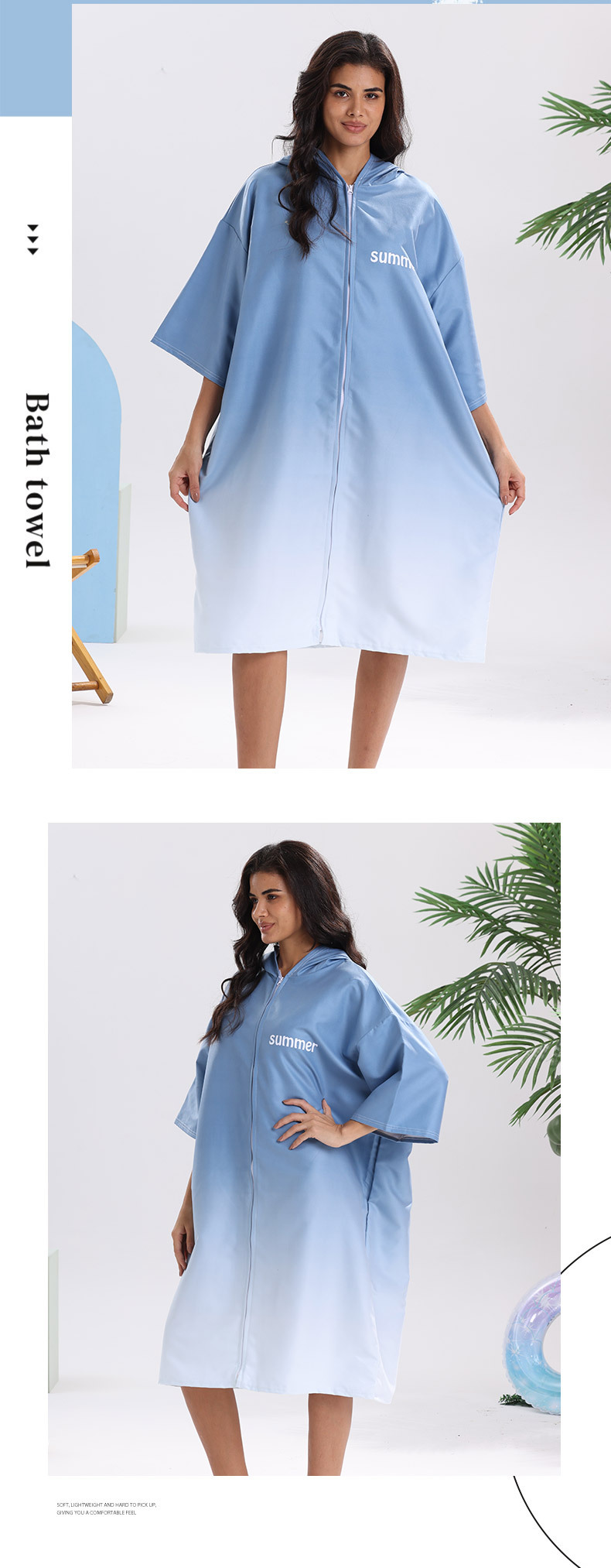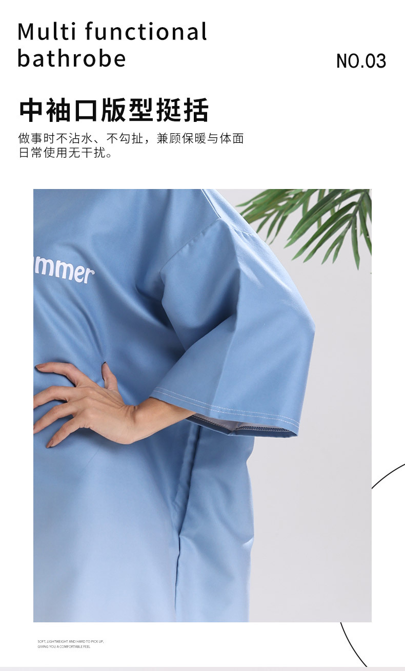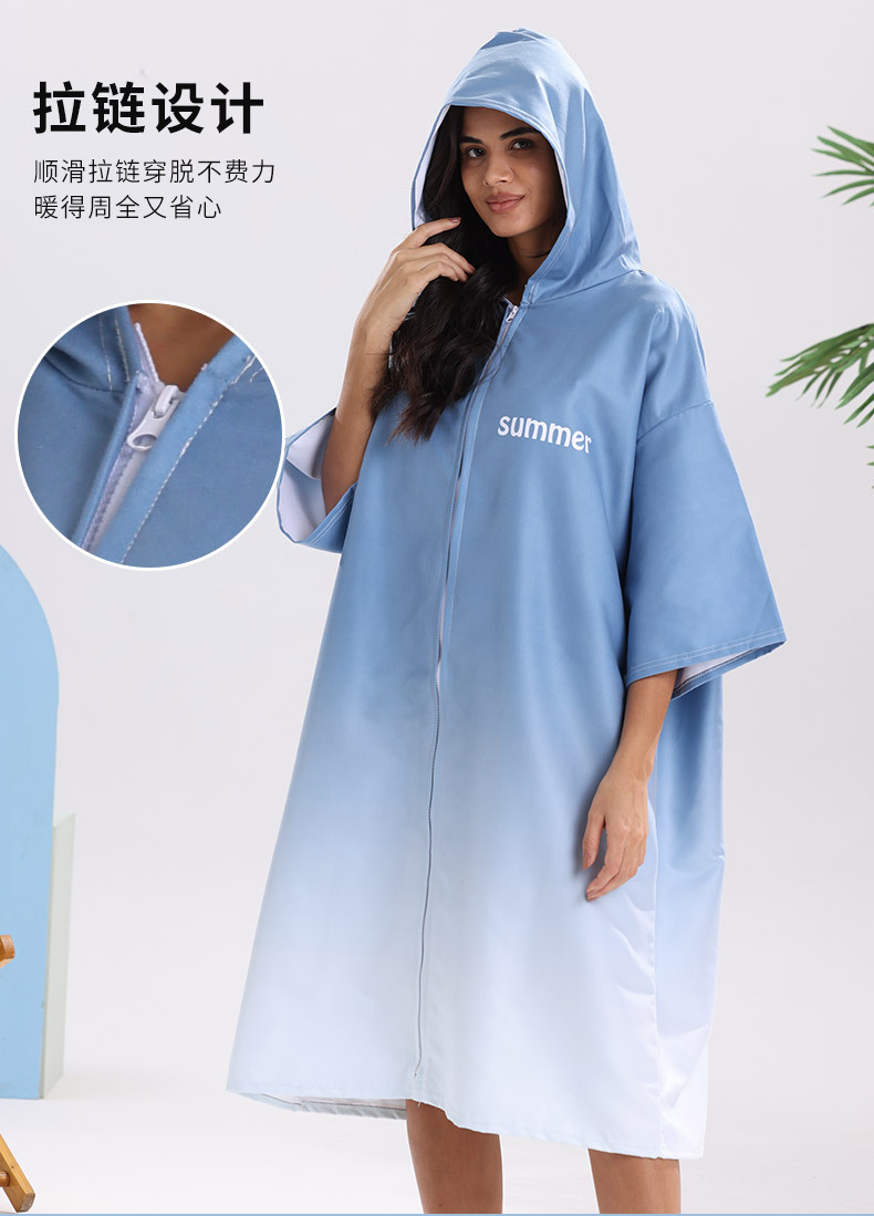 亚马逊经编中袖带拉链成人斗篷浴巾连帽披风可穿浴巾游泳换衣浴袍