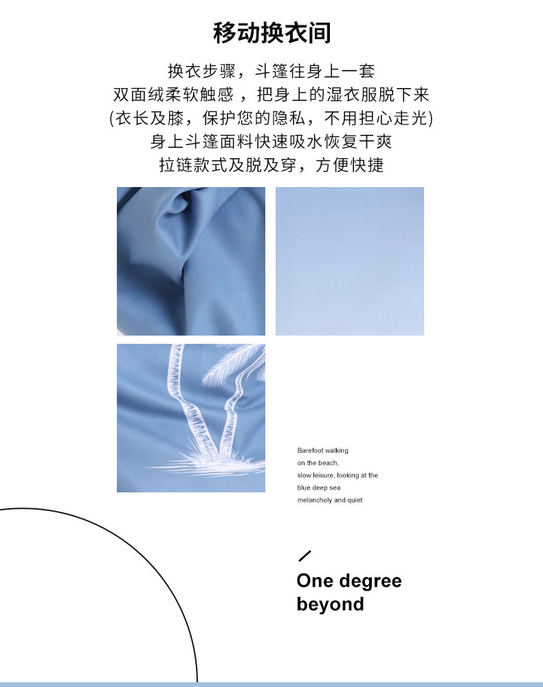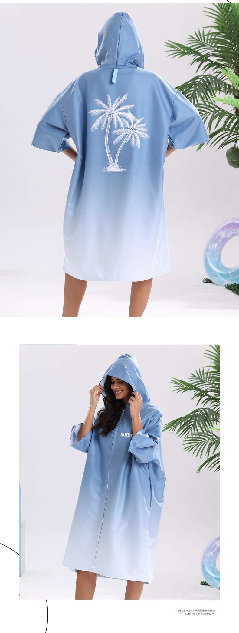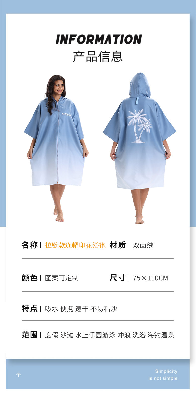 亚马逊经编中袖带拉链成人斗篷浴巾连帽披风可穿浴巾游泳换衣浴袍