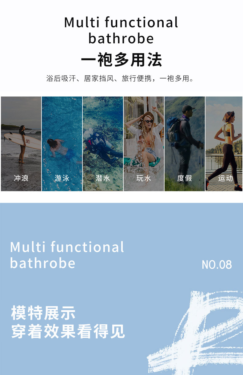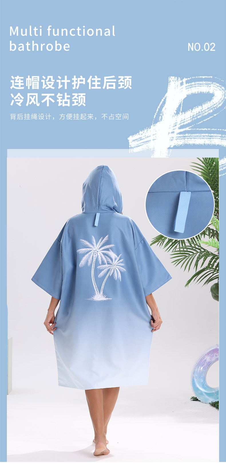 连帽浴袍男游泳浴袍可便携速干斗篷女浴巾开襟穿式沙滩巾潜水运动