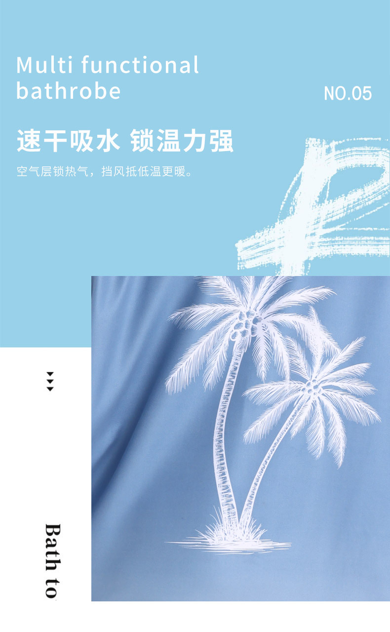 跨境秋冬沙滩冲浪加长印花浴袍速干吸水成人连帽浴巾海边泳池披风