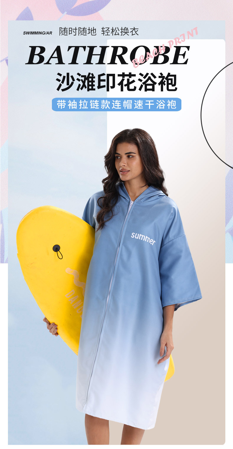 マイクロファイバーフード付きウェアラブル吸水速乾バスタオル大人用ビーチバスローブ夏両面ベルベットプリントマント