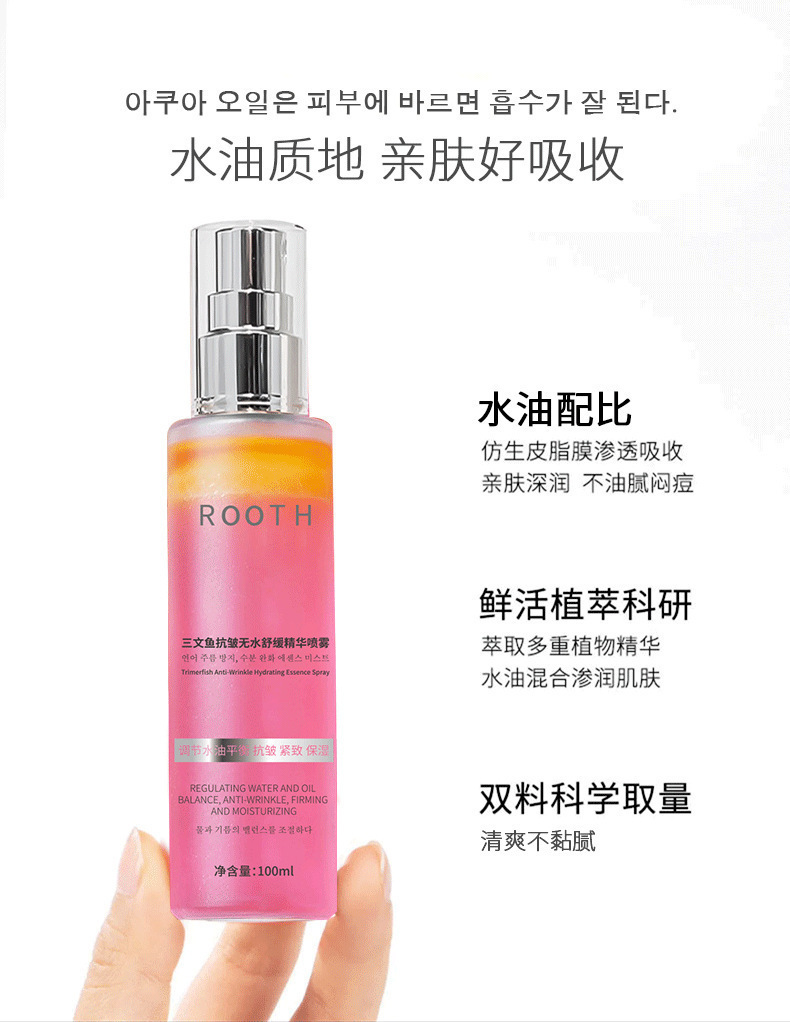 ROOTH三文鱼抗皱无水舒缓精华喷雾保湿补水跨境湿敷精粹弹润水油