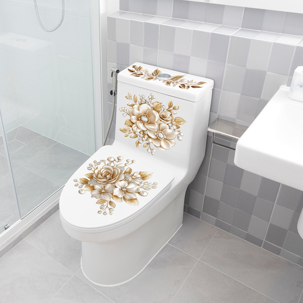 模擬黄金のバラのトイレステッカー浴室トイレ装飾ステッカー黄金の花トイレステッカー自己粘着