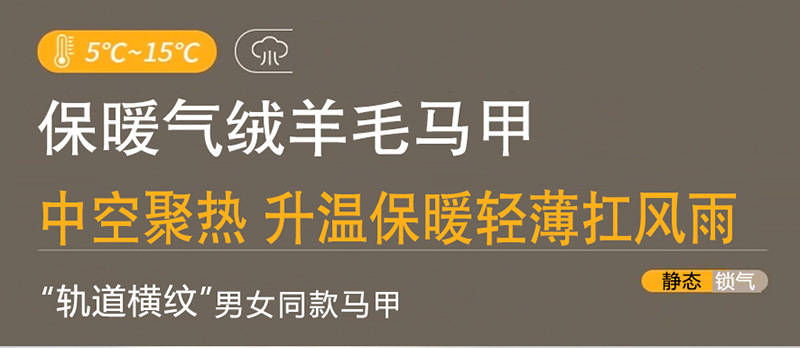 【气绒羊毛马甲】男女同款保暖马夹秋冬蓄热打底背心内胆外穿坎肩