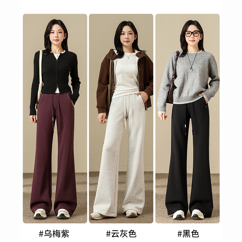 加绒加厚微喇裤女秋冬季高腰修身显瘦新款保暖裤大码休闲裤阔腿裤