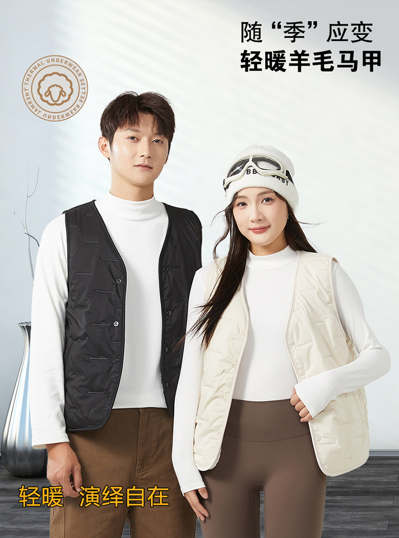 2025秋冬男女新款棉羊毛马甲轻薄修身保暖背心内外穿加厚坎肩休闲