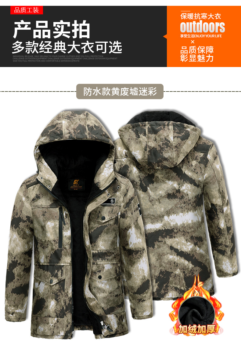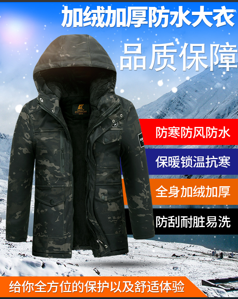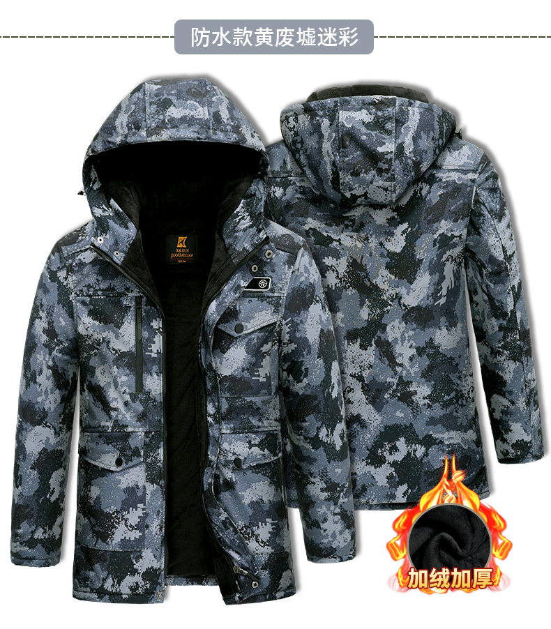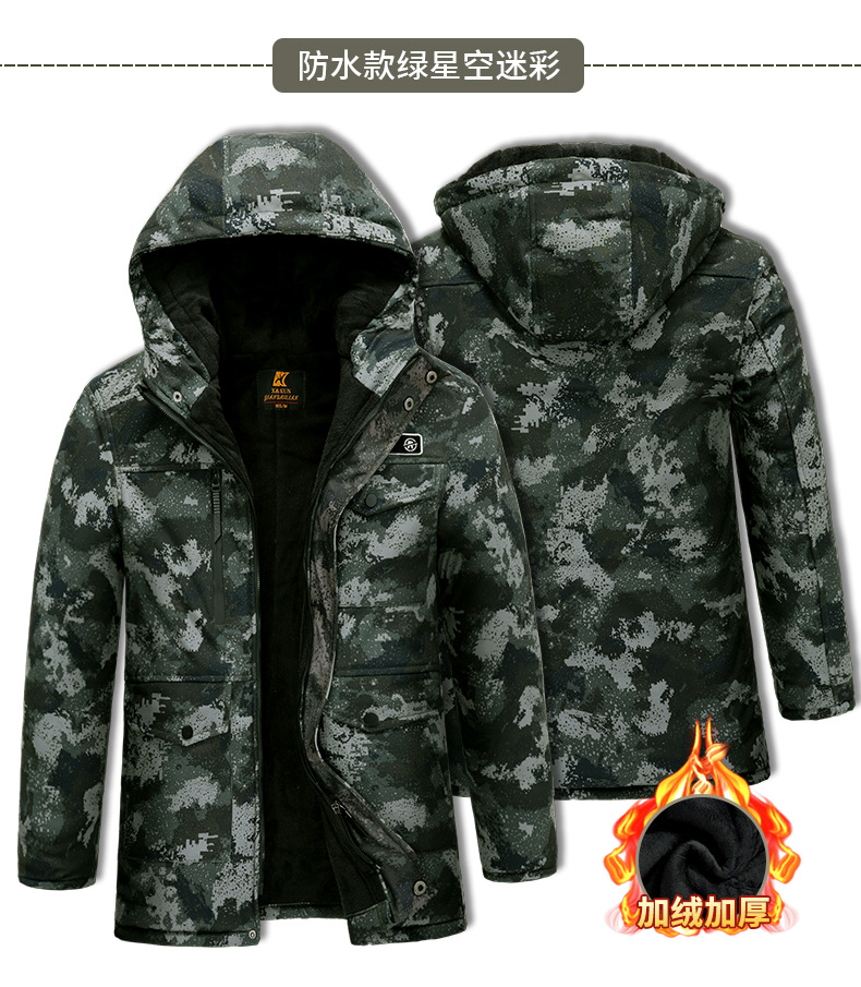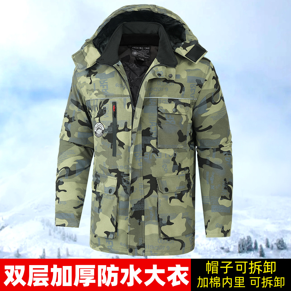 冬季加厚迷彩棉大衣男防泼水防寒保暖棉袄中长款劳保服冷库工作服