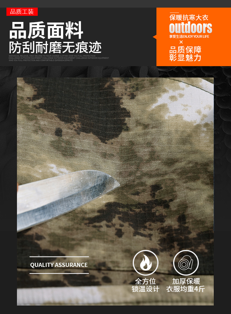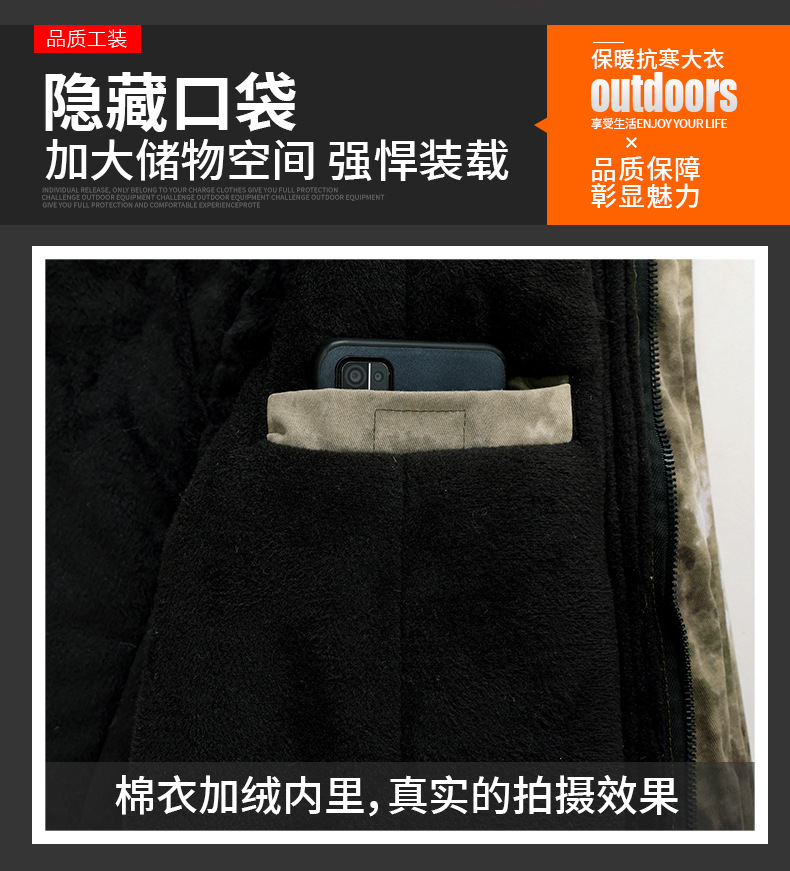 冬季御寒保暖加厚内胆棉服户外迷彩战术冲锋衣多口袋设计舒适棉衣