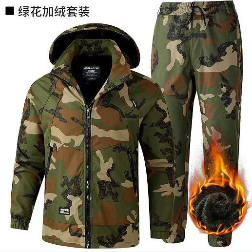 秋冬ベルベット作業服セット男性防水迷彩服耐摩耗性汚れ防止自動車修理労働保険服屋外仕事服