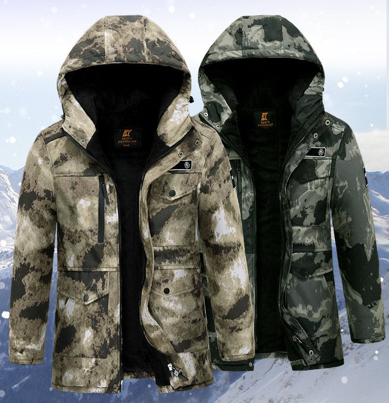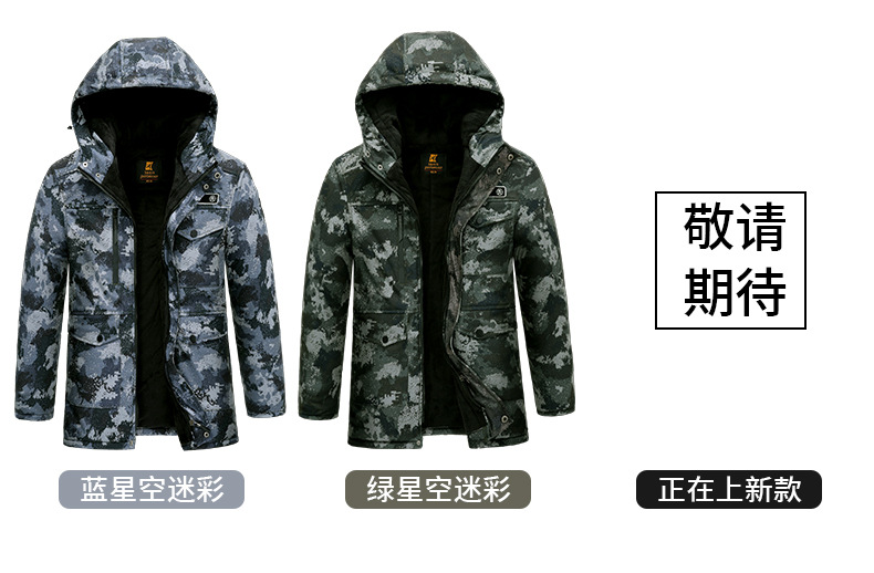 新款男冬季迷彩中长款石墨烯内胆防水自发热防寒棉服保暖棉衣棉袄